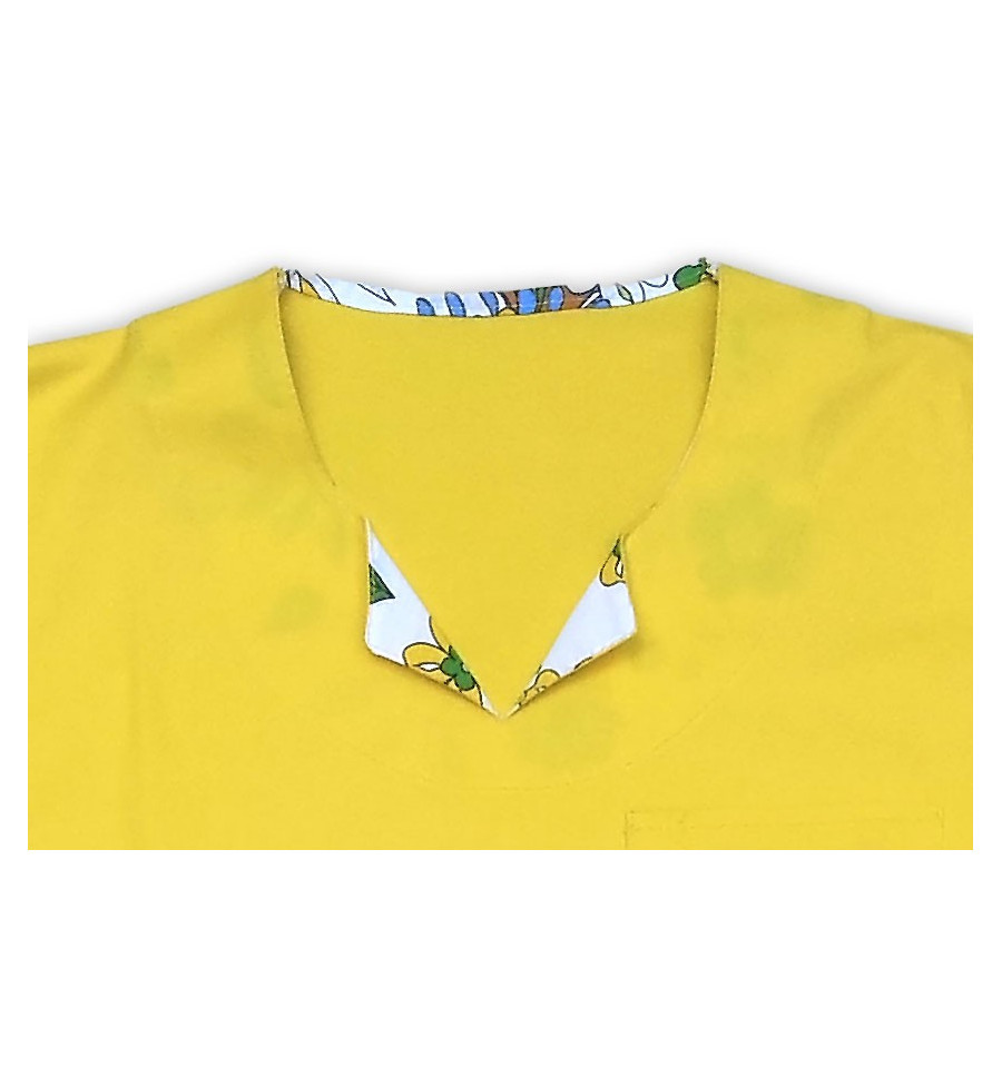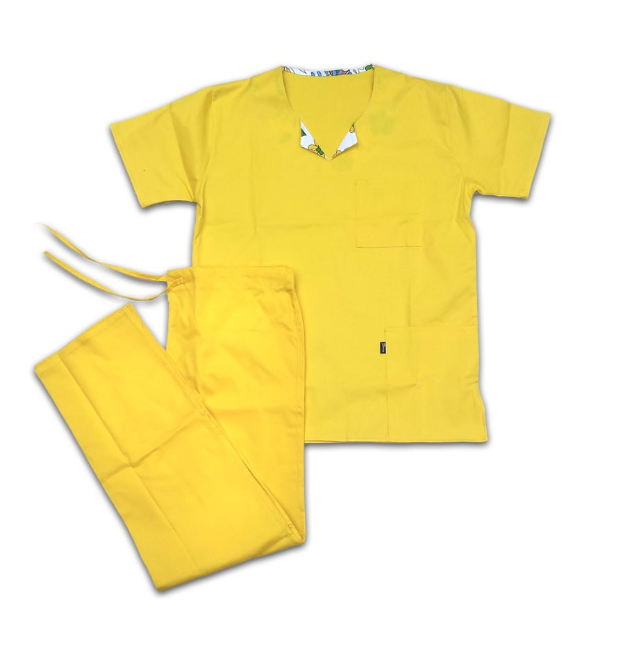 Costumul Medical Fantezia este un model unisex cu o croiala clasica lejera, confectionat din material de calitate: bumbac 95% si elastan 5%. Deosebit la acest model este decolteul care este la baza gatului cu un mic guleras in varianta uni sau imprimata. Masuri: XS - XXL.