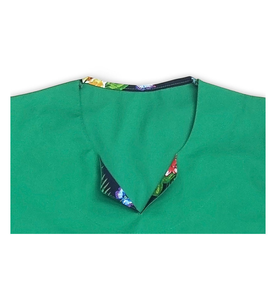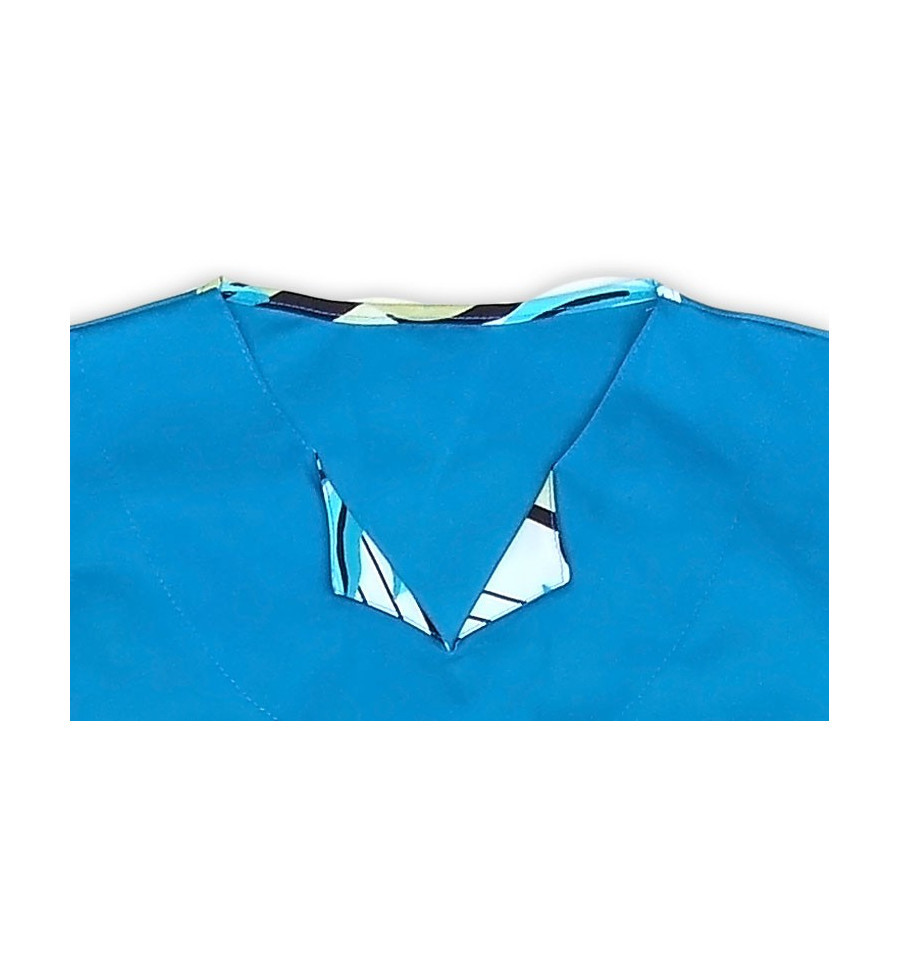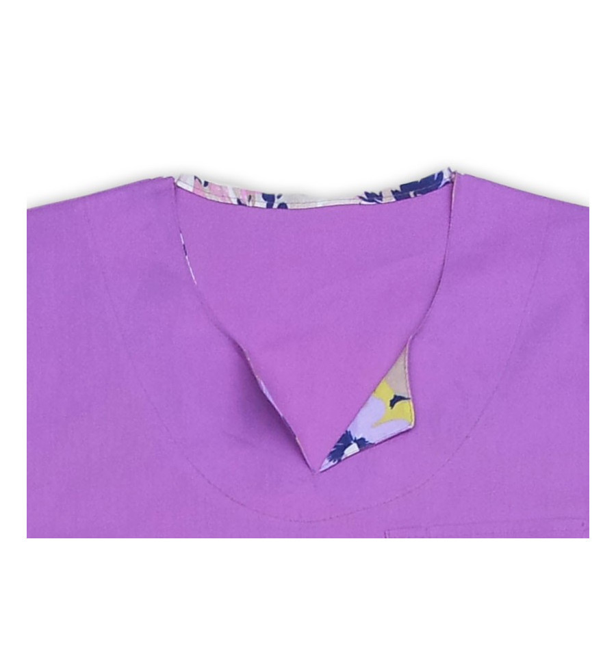 • Bluza medicala dreapta, cu decolteu rotund si un mic guleras in varianta uni sau imprimata.
